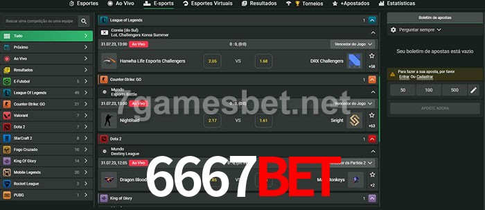 O 6667bet oferece uma grande seleção de opções de apostas em e-sports com probabilidades competitivas